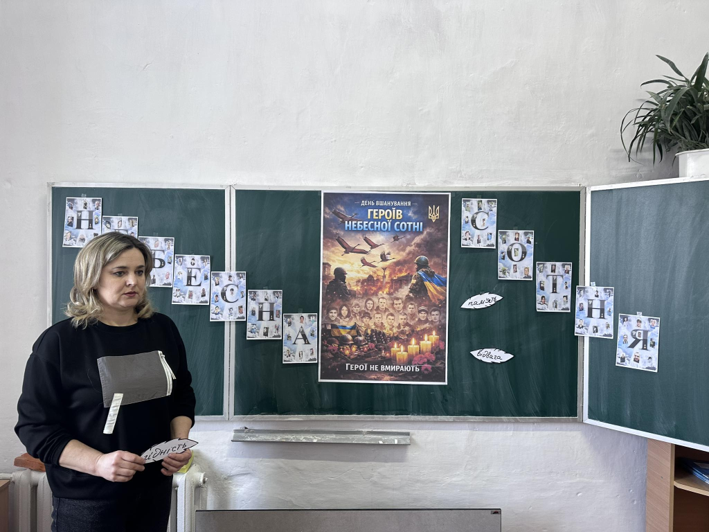 Під час заходу учні згадали трагічні події Революції Гідності 2013–2014 років, вшанували подвиг мужніх синів і дочок України, які віддали своє життя за свободу, демократію та європейське майбутнє нашої держави. Герої Небесної Сотні стали символом незламності, гідності та любові до Батьківщини.